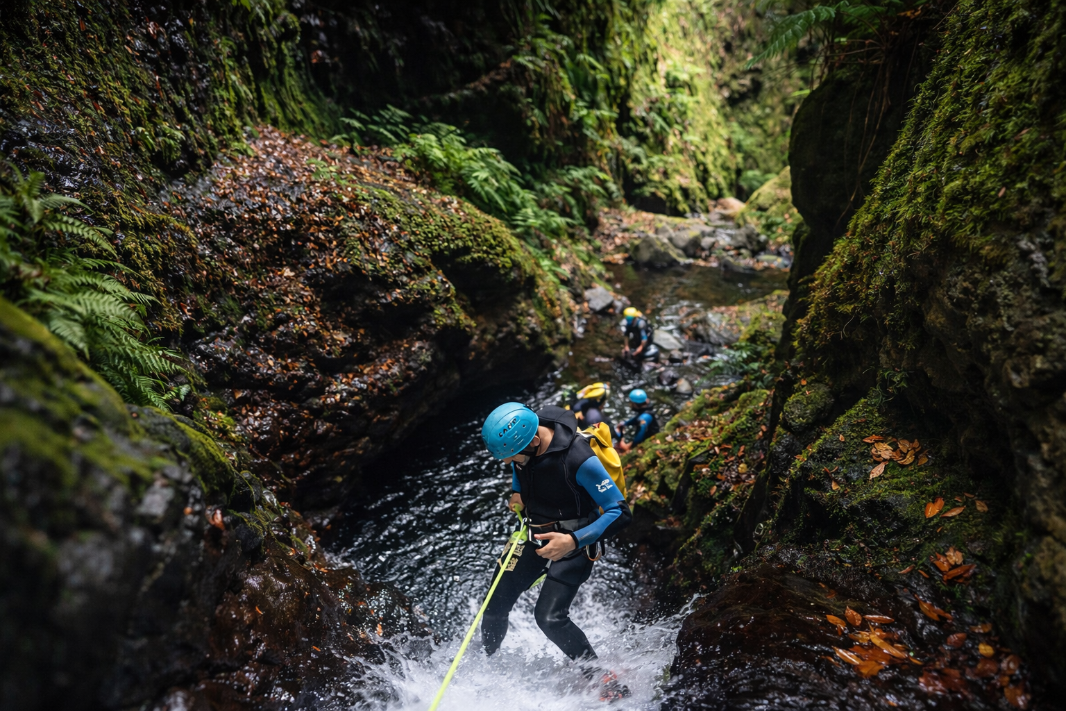 Canyoning představuje možnost poznat Madeiru z méně dostupných míst, kam se běžně nedá dostat. Aktivita probíhá v horských soutěskách a kombinuje chůzi, pohyb ve vodě a technické prvky, jako je slaňování. Spolupracujeme s certifikovanými instruktory, zajistíme vám kompletní vybavení (neopren, přilbu,…) a dopravu z a na nástupní místo. Trasy jsou různé obtížnosti vhodné pro začátečníky až po zkušené účastníky. Canyoning obvykle zabere půl dne.